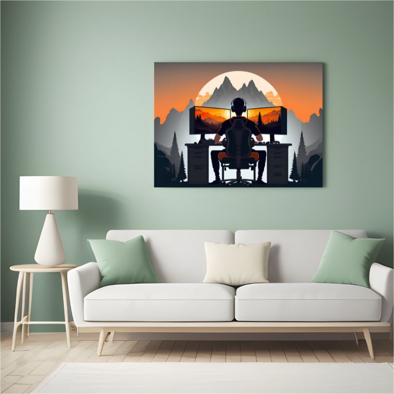 Tableau Décoratif Gamer à son Bureau – L’Essence du Gaming Capturée en Art